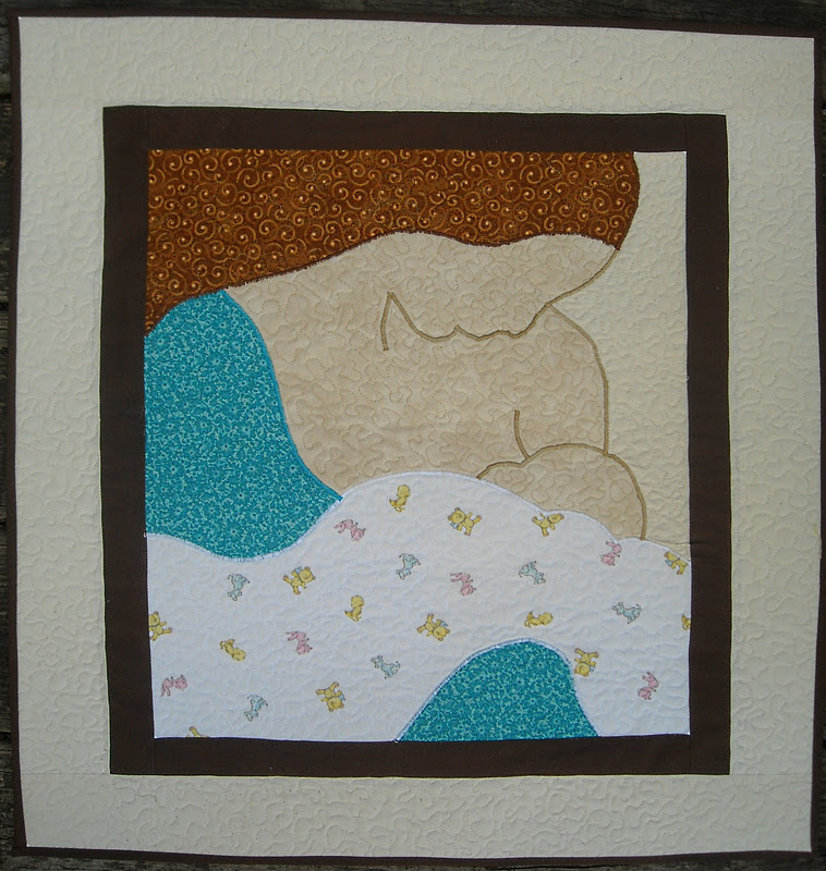 Below: This quilt was created from a photo of my friend Michelle and her baby.